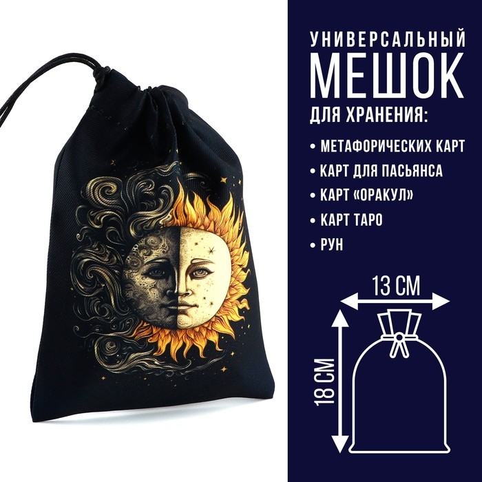 Мешочек для карт на Хэллоуин «Солнце и Луна», чёрный, 12х18 см
