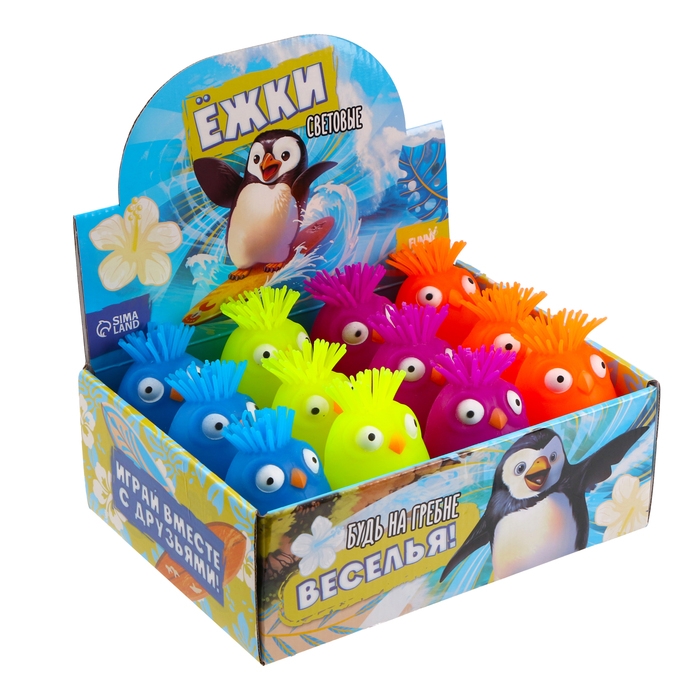 Мяч детский резиновый ёжка световой «Пингвинчик», цвета МИКС , в шоубоксе