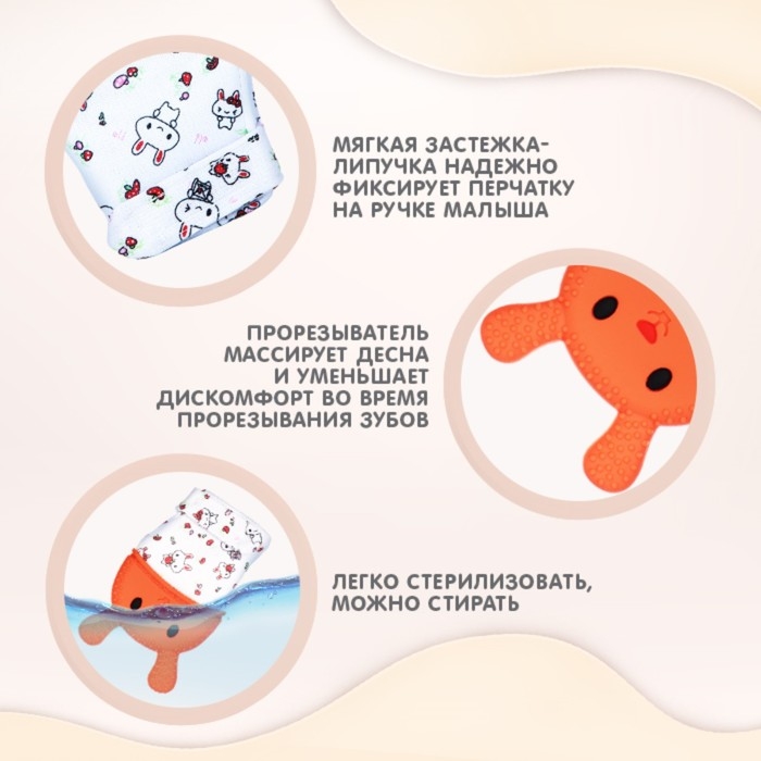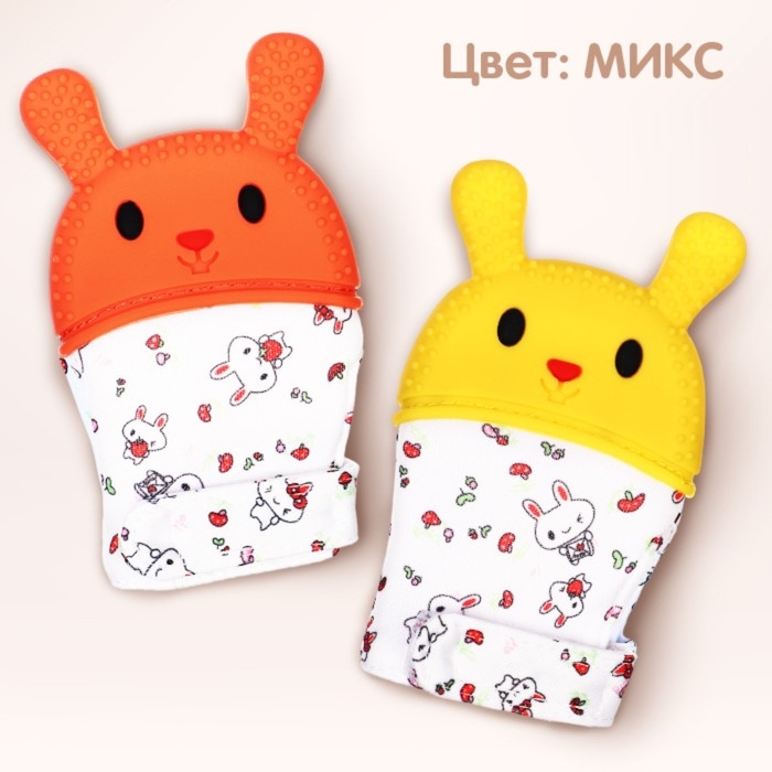 Прорезыватель-рукавичка «Зайка», цвет красный/желтый, Крошка Я