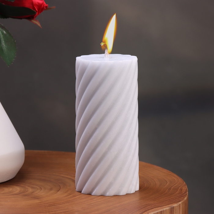 Свеча-цилиндр "Спираль", 5х10 см, серая, 6 ч