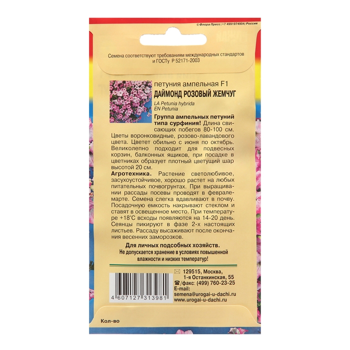 Семена цветов Петуния "Даймонд Розовый жемчуг", F1, 3шт
