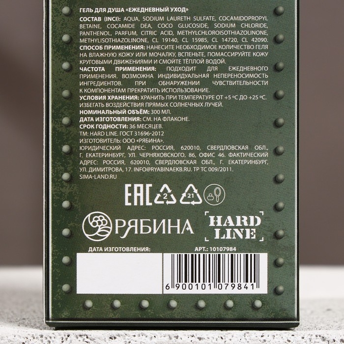 Гель для душа «Мужество, сила, отвага», 300 мл, аромат сандала и бергамота, HARD LINE