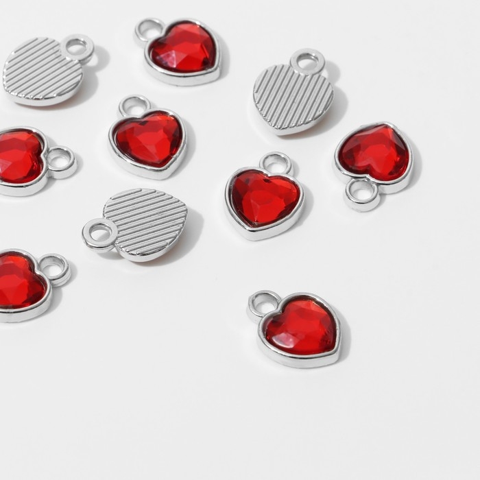 Концевик-подвеска «Сердечко» 1,7×1,3×0,2 см, (набор 10 шт.), цвет красный в серебре