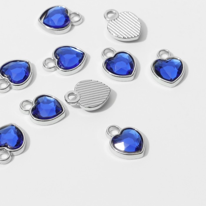 Концевик-подвеска «Сердечко» 1,7×1,3×0,2 см, (набор 10 шт.), цвет синий в серебре