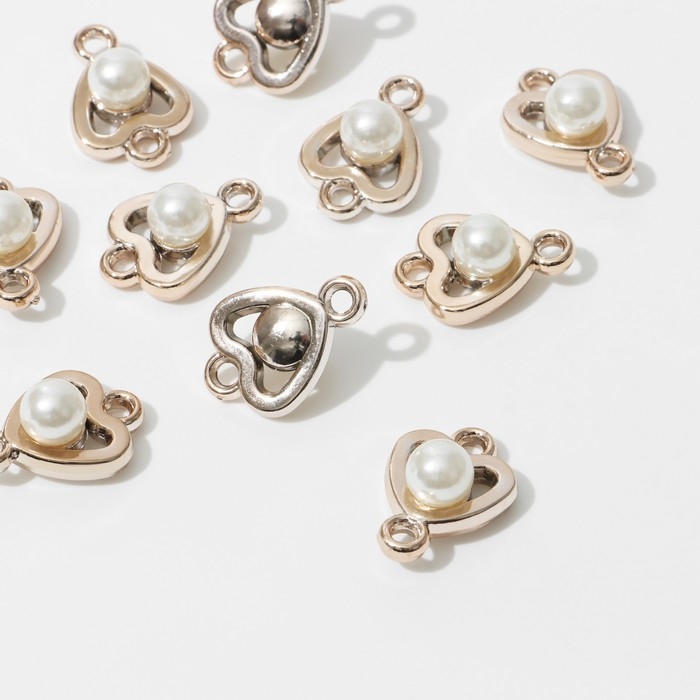 Коннектор «Жемчуг» сердце 2,3×1,6×0,8 см, (набор 10 шт.), цвет белый в золоте