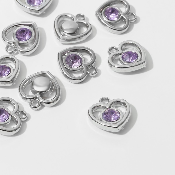 Подвеска «Сердце» 2,4×2,2×0,8 см, (набор 10 шт.), цвет сиреневый в серебре