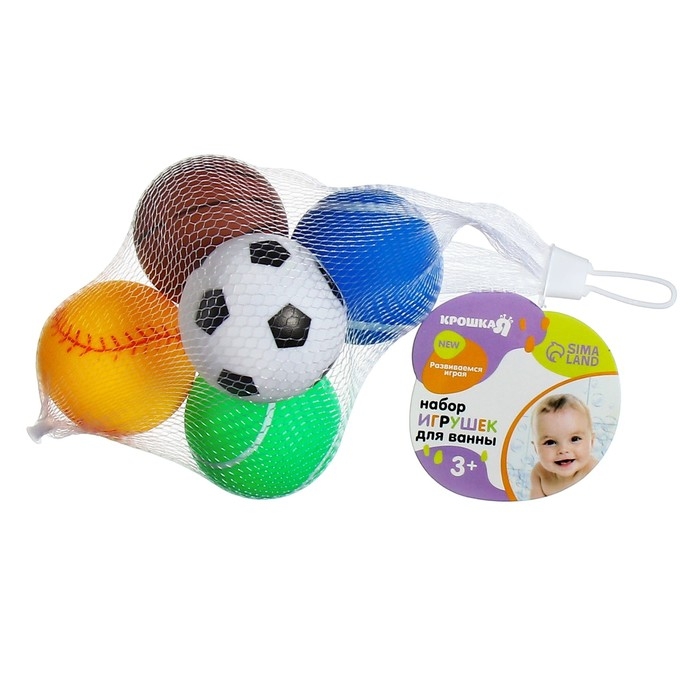 Набор резиновых мячиков «Спорт», 5 шт., с пищалкой, Крошка Я