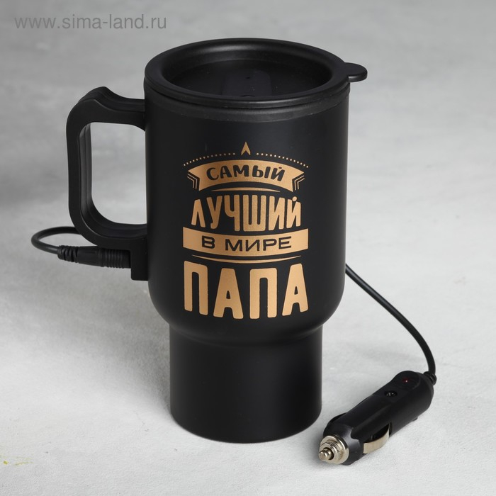 Термокружка, 450 мл, Автомобильная «Самый лучший в мире папа», сохраняет тепло 3 ч, с подогревом от прикуривателя