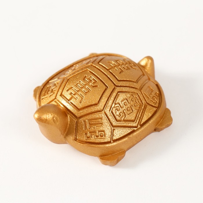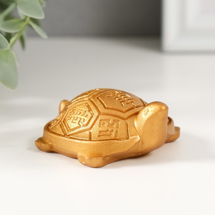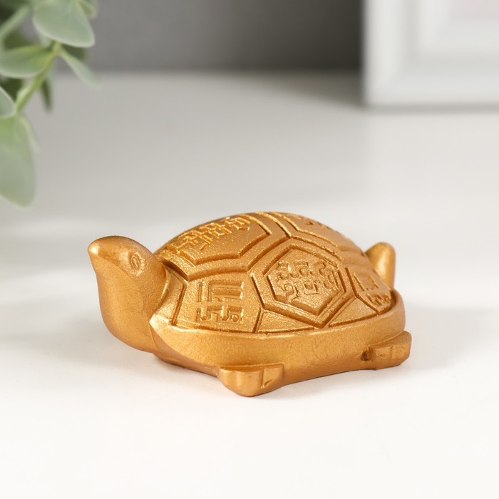 Нэцкэ полистоун под золото "Черепаха с символами на панцире" 6,4х5,5х2,2 см