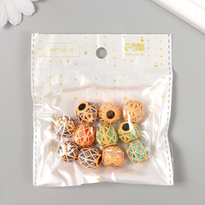 Бусины для творчества пластик "Этно. Узоры. Голография" набор 20 гр 1,4х1,4х1,4 см