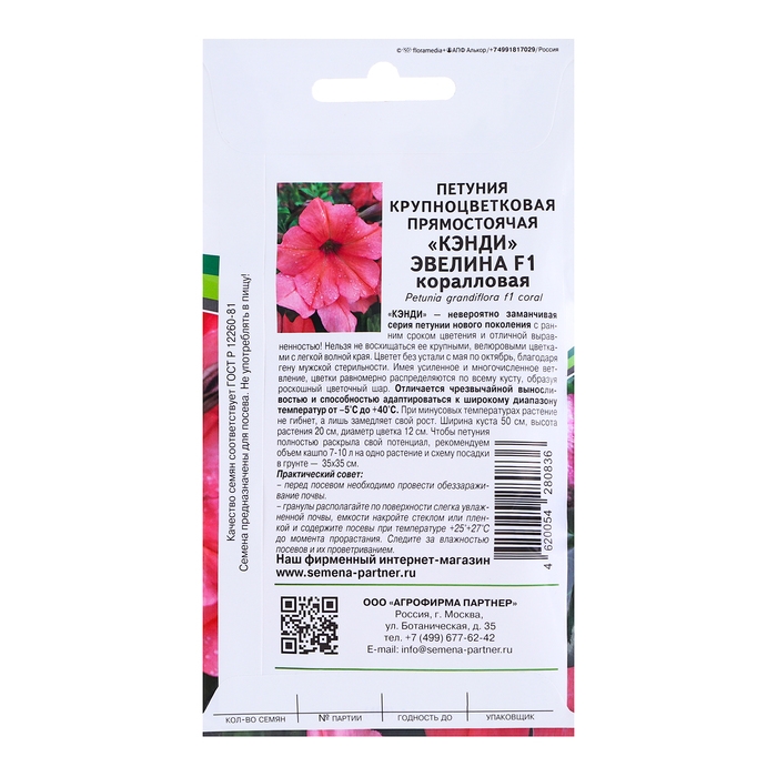Семена цветов Петуния прямостоячая коралловая "Кэнди Эвелина F1", 5 шт