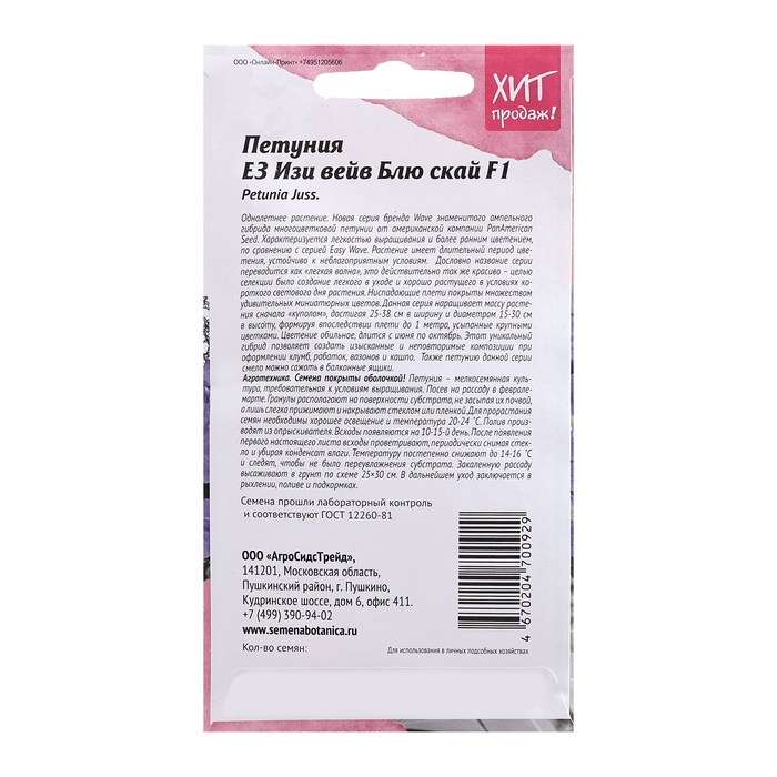 Добавьте яркие акценты и свежесть в ваш сад с петунией "Е3 Изи Вейв Блю Скай F1"!