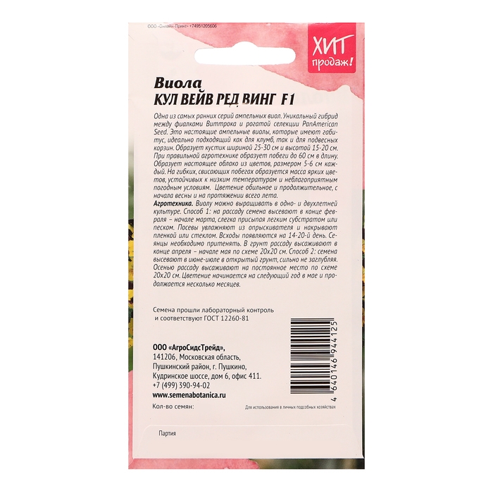 Семена цветов Виола "Кул Вейв Ред Винг F1", 5 шт