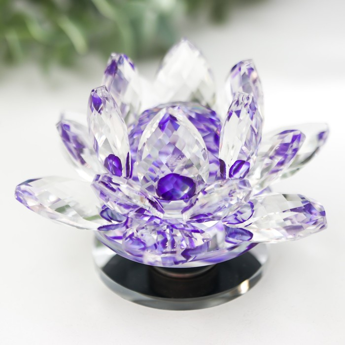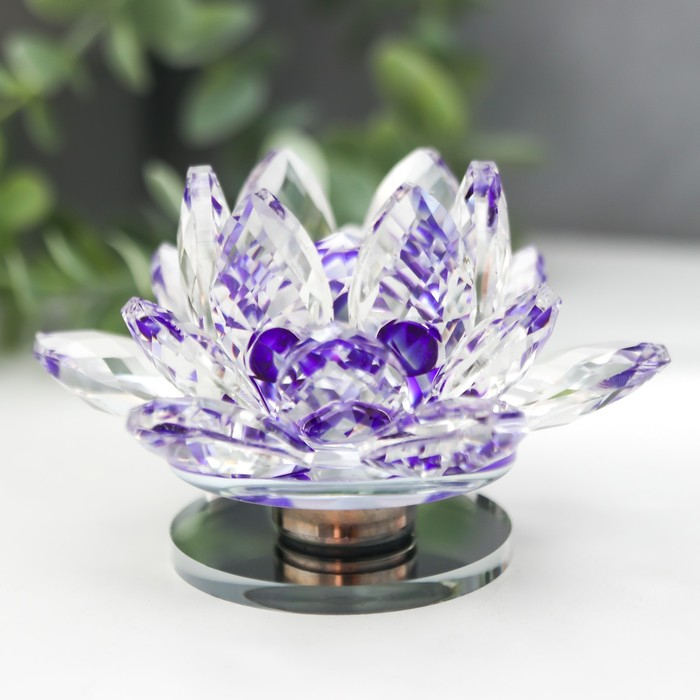 Сувенир стекло "Фиолетовый лотос на подставке" вращается 5,5х9х9 см