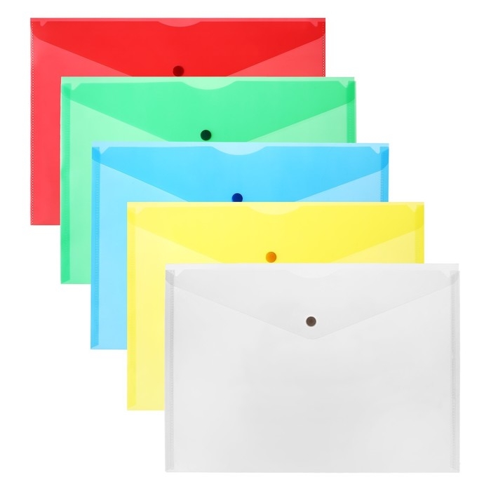 Набор папок-конвертов на кнопке 10 штук, А4, 180 мкм, Calligrata Office, полупрозрачные, микс