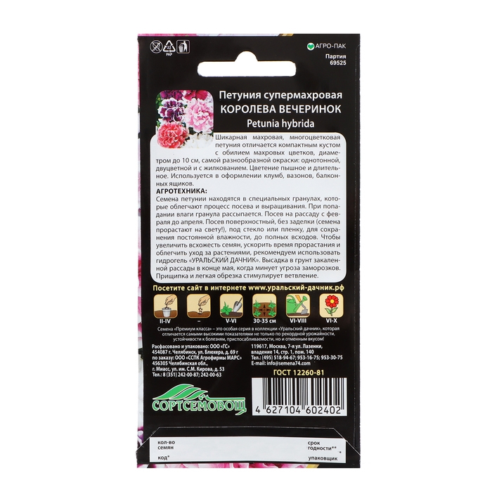 Семена Цветов Петуния супермахровая "Королева Вечеринок" ,6 шт ,