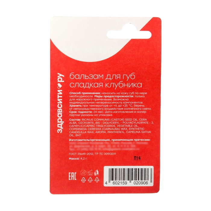 Бальзам для губ Здравсити "Сладкая клубника", 5 шт по 4,2 г