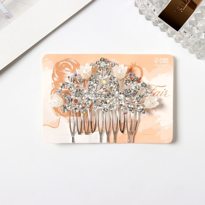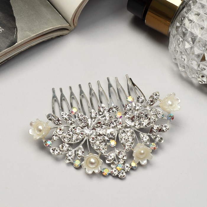 Гребень для волос "Сафьян" бабочки, 7х8 см, серебро