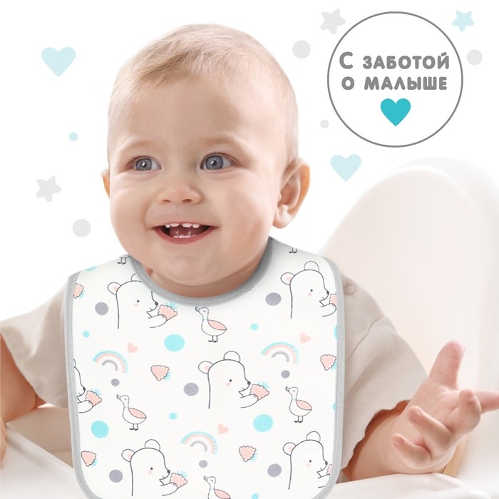 Нагрудник детский Крошка Я, 17х20 см (фасовка 10 шт., серая окантовка)