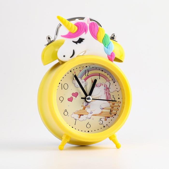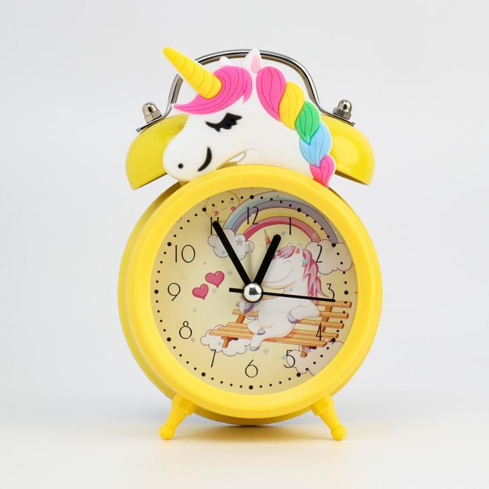 Часы - будильник настольные детские "Единорог", бесшумные, d-6,5 см, 12.5 х 7.5 х 5 см