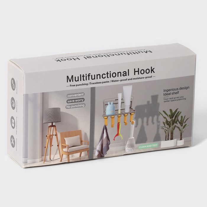 Держатель для ванных и кухонных принадлежностей с 5 крючками - удобный и практичный аксессуар для вашего дома.