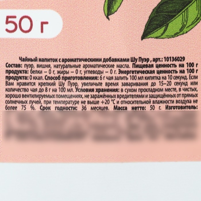 Чай Шу Пуэр с вишней, тонизирует и способствует похудению, 50 г.