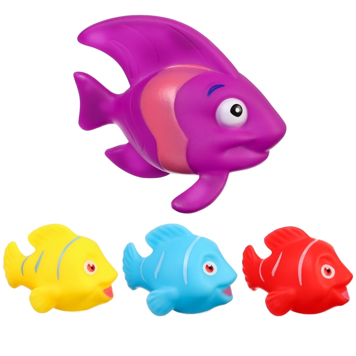 Набор резиновых игрушек для ванны «Морские рыбки», 8 см, с пищалкой, 4 шт, виды МИКС, Крошка Я