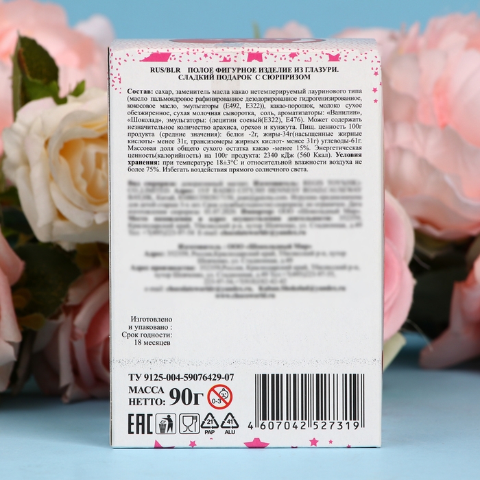 Кондитерское изделие с сюрпризом "Любовь" в форме яйца принесет радость и удовольствие всем любителям сладостей. Внутри этой привлекательной упаковки находится сюрприз, который обязательно порадует как взрослого, так и ребенка. Необычный дизайн этой классической сладости cделает ее оригинальным подарком на 14 февраля. Шоколадное яйцо с сюрпризом можно подарить как самостоятельный презент, так и дополнить им основной подарок.