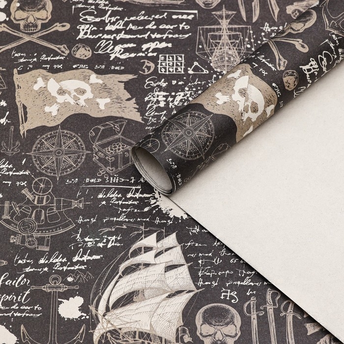Бумага упаковочная, крафт "Морской бой", 70 х 100 см, 1 лист