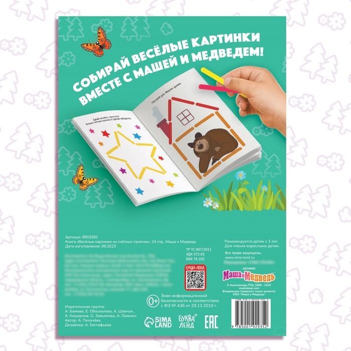 Набор «Весёлые картинки из счётных палочек»: книга 24 стр., 17 × 24 см, + 100 палочек, Маша и Медведь