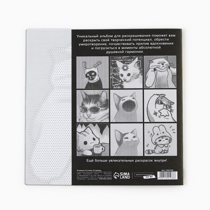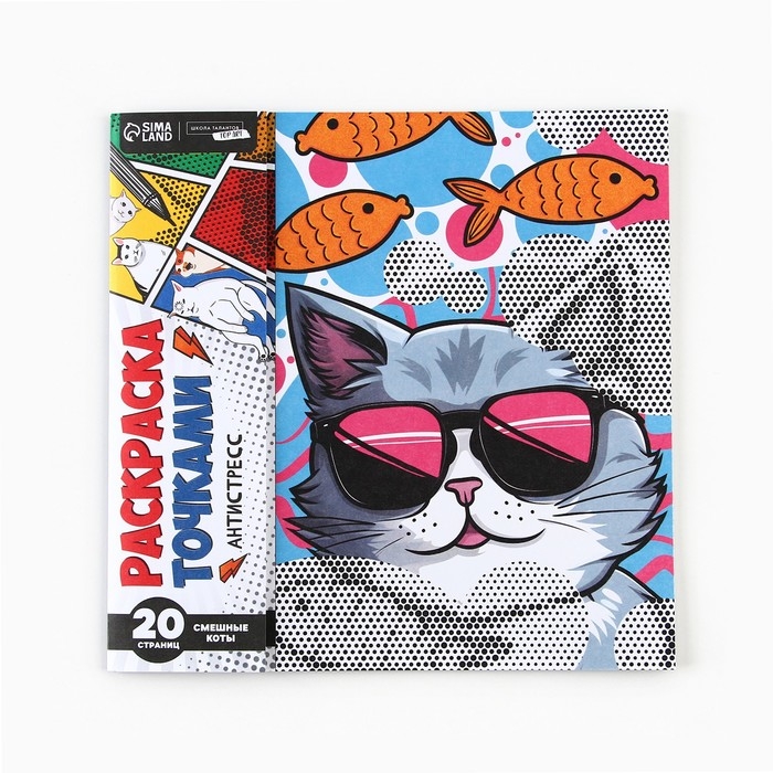 Раскраска-антистресс по точкам «Крутые котики», 20 стр