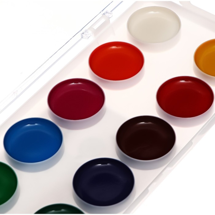 Краски акварельные, в кюветах, с кистью, 12 цветов