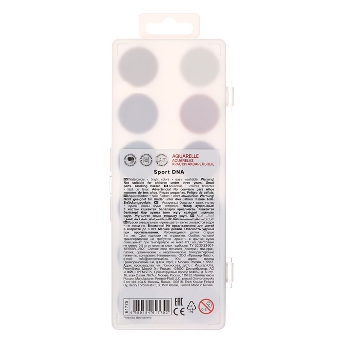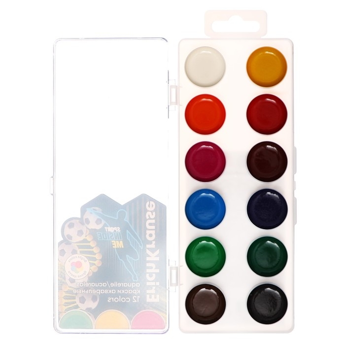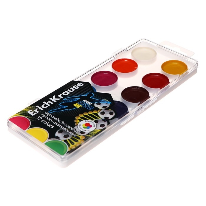 Акварель 12 цветов, ErichKrause Sport DNA, без кисти, пластиковая коробка, европодвес