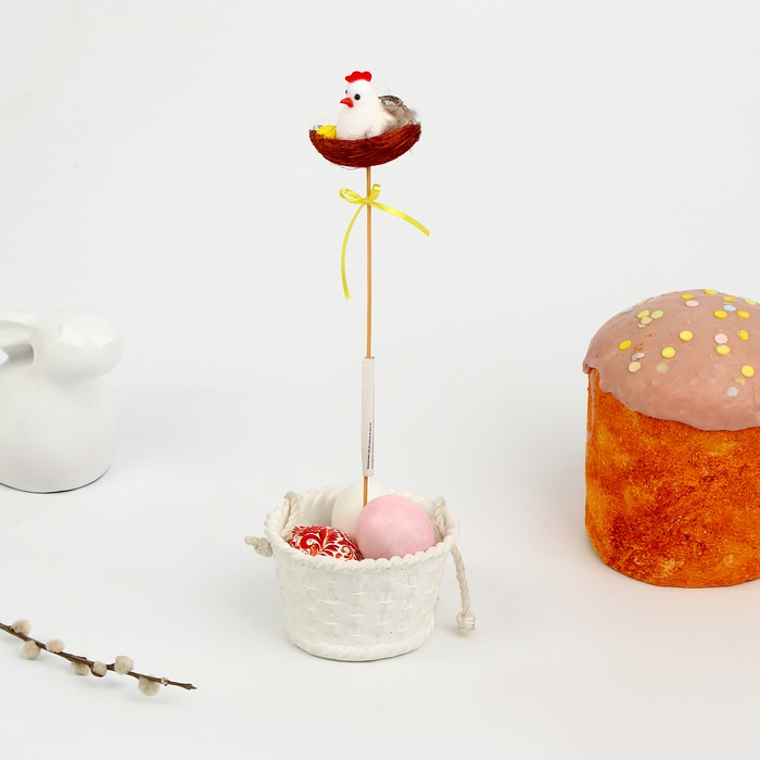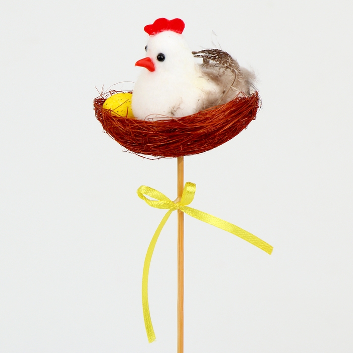 Пасхальный декор на палочке «Курочка в гнезде», 7 × 7 × 28 см, в гнёздышке