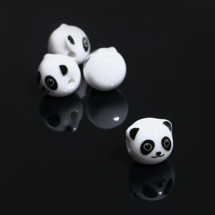 Бусина керамическая «Панда», 1,2 × 1,2 × 1,2 см, (набор 4 шт.), цвет бело-чёрный