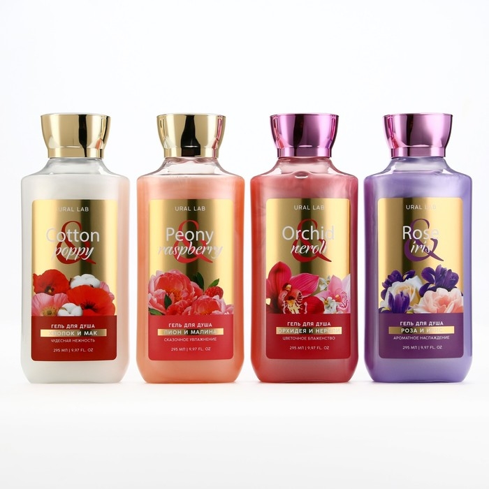 Гель для душа, чудесная нежность, 295 мл, аромат хлопка и мака, FLORAL & BEAUTY by URAL LAB