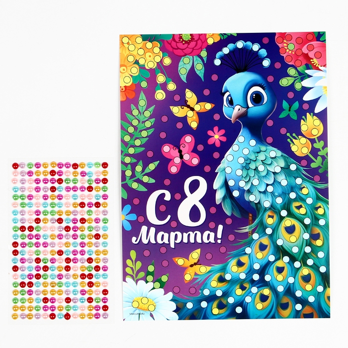 Аппликация жемчужными полубусинами «Прекрасный павлин»