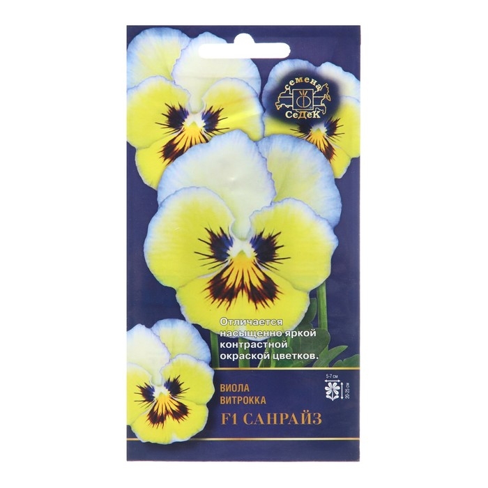 Традиционно любимое всеми двулетнее травянистое растение семейства Фиалковые. Цветки крупные, диаметром 5-7 см, бархатистые. Основной фон цветка – насыщенно-желтый, дополняется красивой контрастной каймой темно-синего цвета по краю волнистых лепестков, на нижних лепестках черные пятна и крупные штрихи, что делает его очень привлекательным. Кустик крепкий, компактный, высотой 20-25 см. Виолы серии «Аврора» отличаются яркой контрастной окраской, надежностью в выращивании. Цветение длительное и продолжительное с весны до поздней осени. Растение хорошо переносит пересадку в цветущем состоянии, прекрасно растет на солнечном месте и в полутени. Для активного цветения требуется регулярный полив и подкормки азотными удобрениями после пикировки и полными комплексными удобрениями в течение всего лета с интервалом 10-14 дней. Не забудьте удалять отцветшие цветки. Используя правильно агротехнику - эта романтичная виола не оставит вас равнодушными, она будет роскошным украшением для вашего балкона и садовых ваз, клумб и рабаток. Чтобы получить цветущие растения в год посева, семена высевают на рассаду в конце Февраля - начале Марта. В открытый грунт виолу высаживают в конце Апреля - Мае, на расстоянии 20-25 см. Для весеннего цветения семена высевают в помещении или в открытый грунт в июне-июле.
