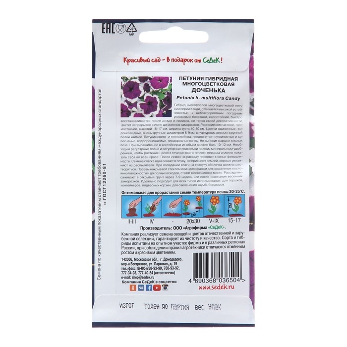 Семена цветов Петуния "Доченька", Евро, 10 шт