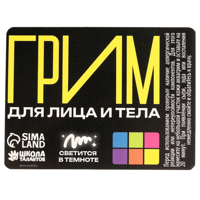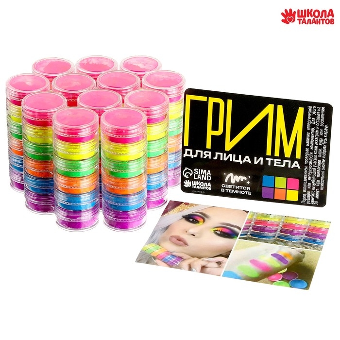 Грим для лица, неон, светится ночью, 25 мл., цвет МИКС