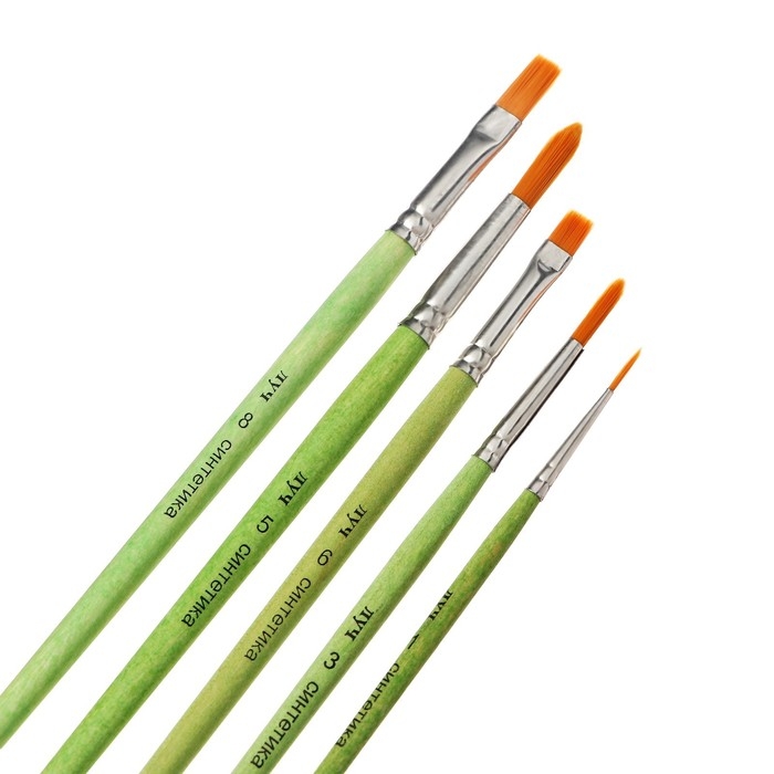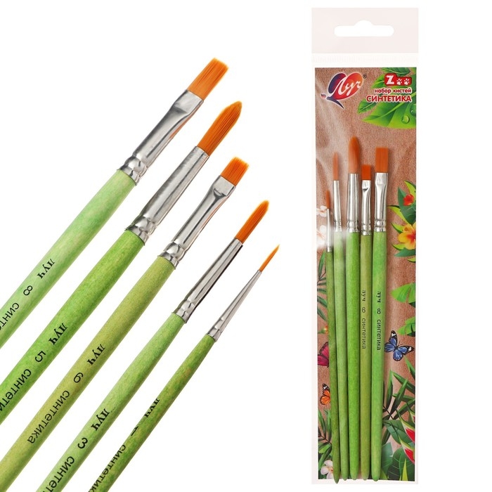 Набор кистей синтетика ZOO, круглые (№ 1, 3, 5) и плоские (№ 6, 8)