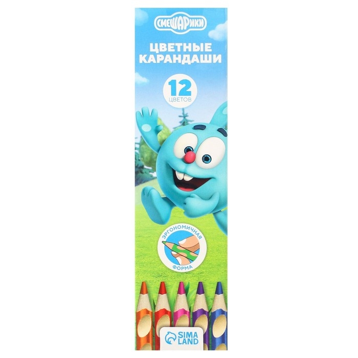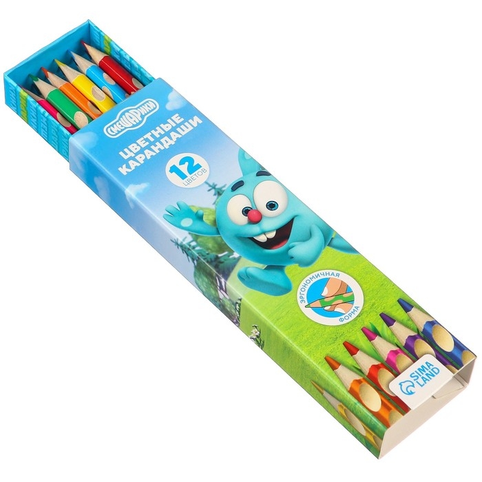 Цветные карандаши, 12 цветов, трехгранные, Смешарики