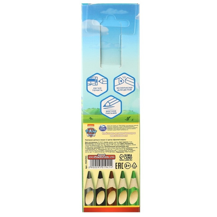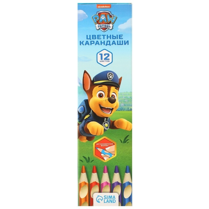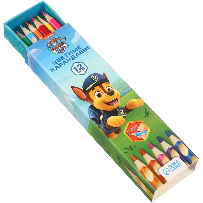 Цветные карандаши, 12 цветов, трехгранные, Щенячий патруль