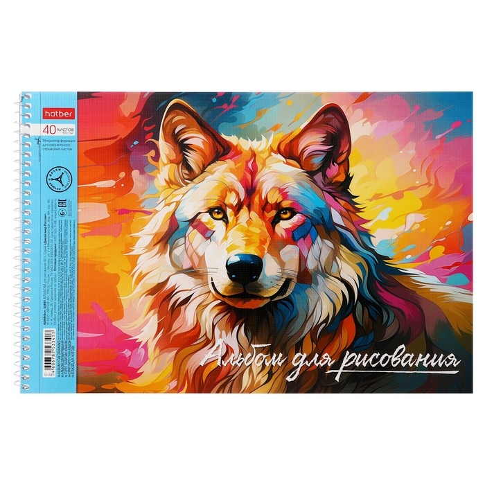 Альбом для рисования А4, 40 листов на гребне "Дикий мир России", обложка мелованный картон, тиснение, перфорация на отрыв, блок 100 г/м2, МИКС