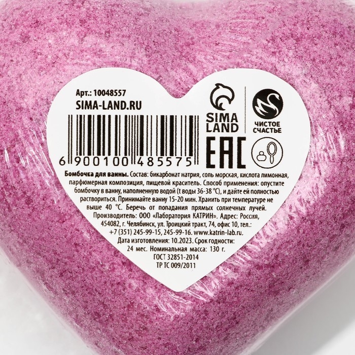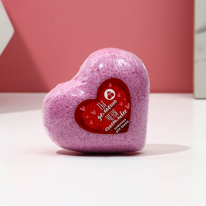 Бомбочка для ванны «Ты делаешь меня счастливее», 130 г, аромат вишни, ЧИСТОЕ СЧАСТЬЕ