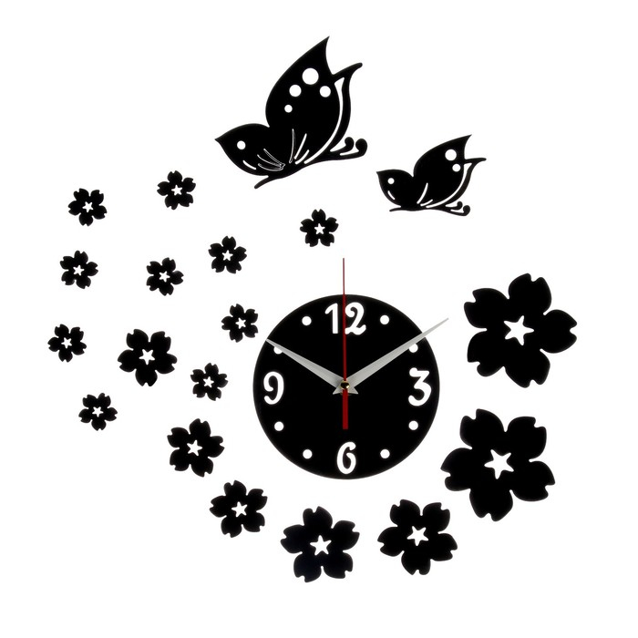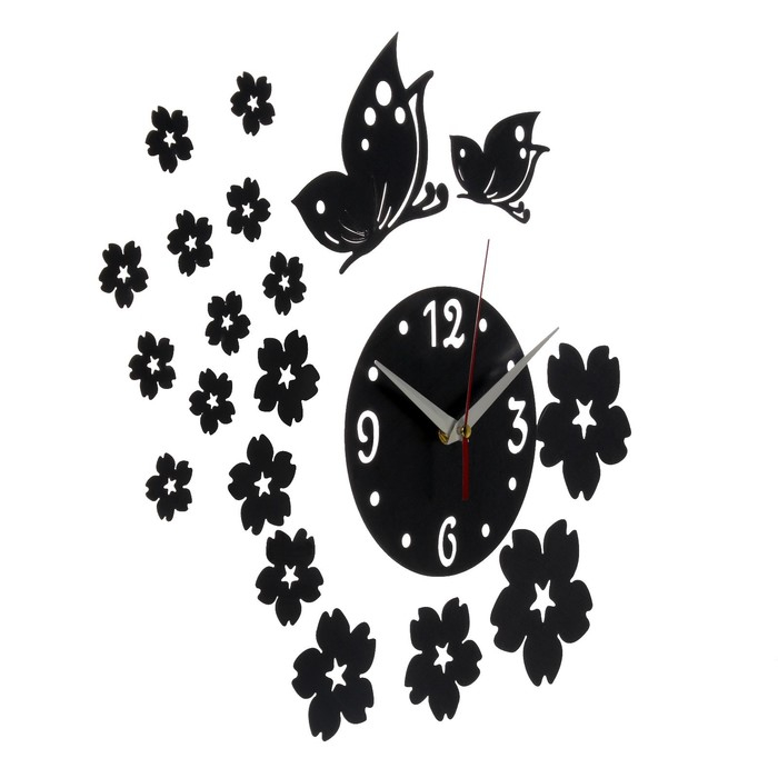 Часы настенные интерьерные, 3d "Цветы и бабочки", бесшумные, наклейка, большие, d-15 см