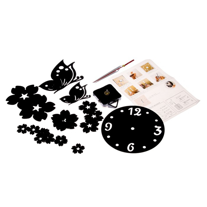 Создавайте часы в собственном стиле, проявляйте изобретательность и креативность. Не обязательно располагать числа по кругу — придайте аксессуару необычную форму, поменяйте диаметр циферблата, используйте не все элементы. Комплектующие легко клеятся на стену и без труда снимаются.