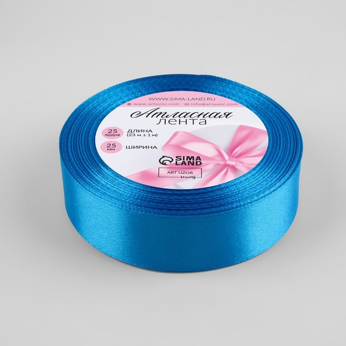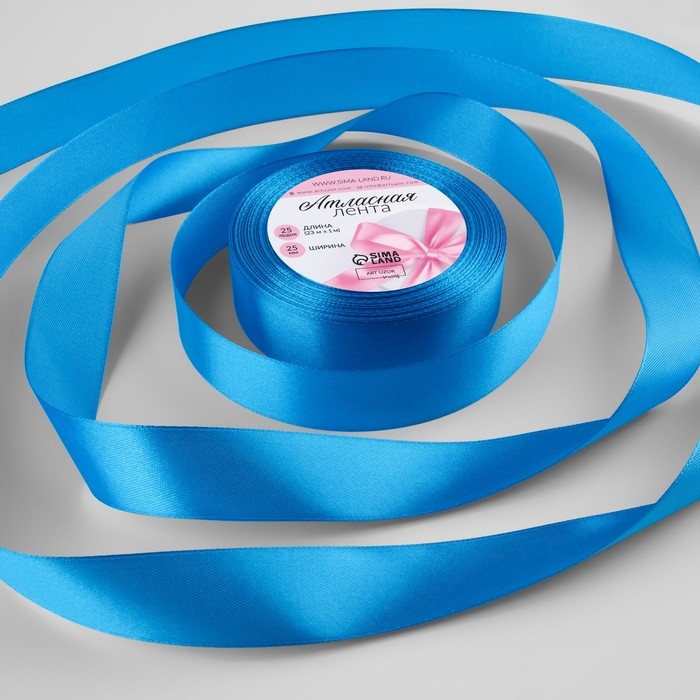 Лента атласная, 25 мм × 23 ± 1 м, цвет лазурный