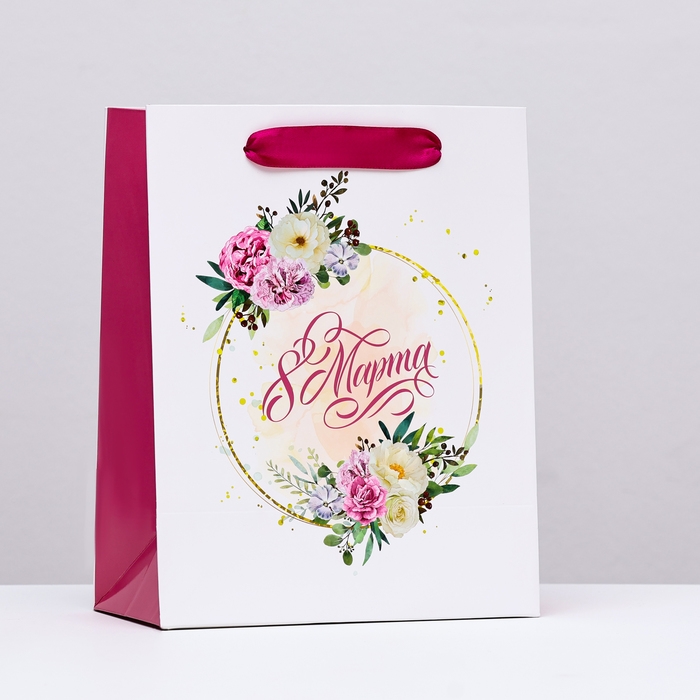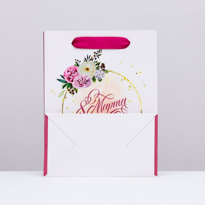 Пакет подарочный вертикальный «8 Марта», ML 23 × 27 × 11.5 см