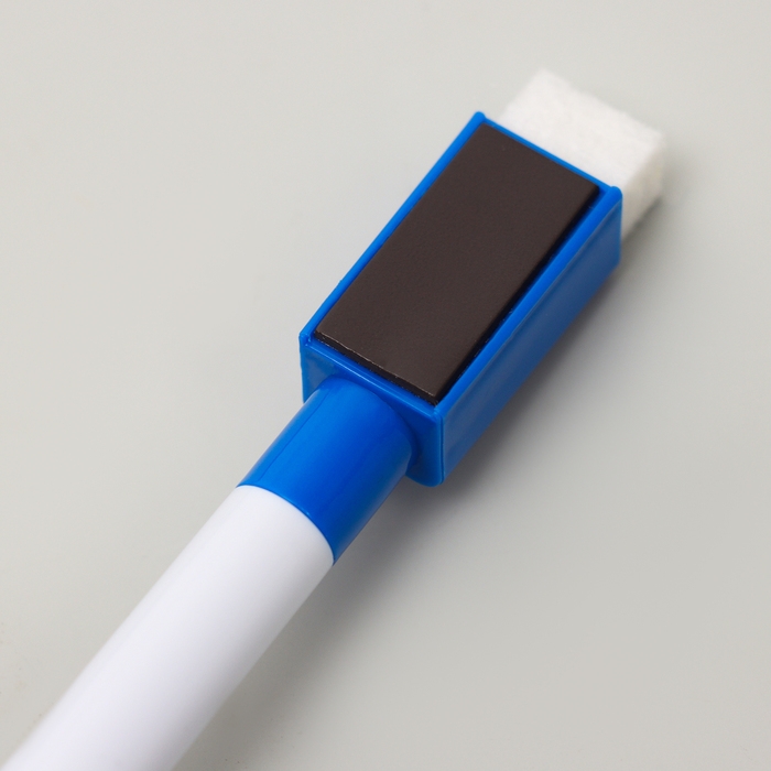 - На колпачке маркера есть войлочная губка и магнит. С помощью губки можно стирать надписи на доске, а с помощью магнита маркер можно хранить, прикрепив его к магнитной доске.